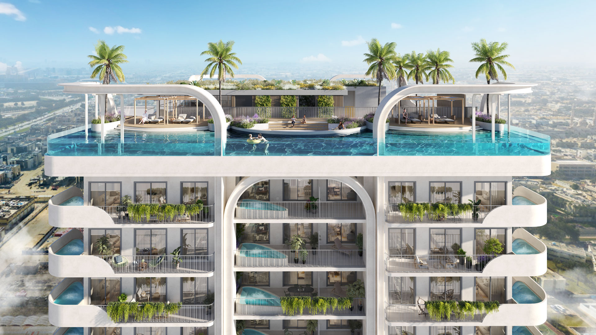 Inspired by nature, Weybridge Gardens 5 celebrates blooming through its organic, petal-inspired design. The geometric façade mirrors natural forms, accentuated