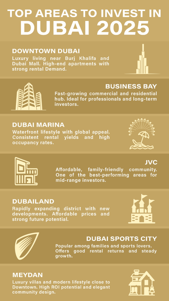 After exploring the many reasons why Dubai remains a top real estate destination, the next question is, where should you invest? The city offers a wide range of communities suited for different lifestyles and budgets. Here are some of the most sought-after areas for property investment in Dubai: